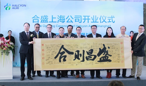 The opening ceremony was presided by Mr. Yang Yu, General Manager of Halcyon Agri Shanghai. Mr. Liu Hongsheng and Mr. Robert Meyer unveiled the nameplate for Halcyon Agri Shanghai. Eight guests, including the Director of Business Delivery Department at the Shanghai Futures Exchange Mr. Gu Zhongguo stamped their names on the scroll saying “He Ze Chang Sheng” (meaning “United, We Will Prosper Together” in English).