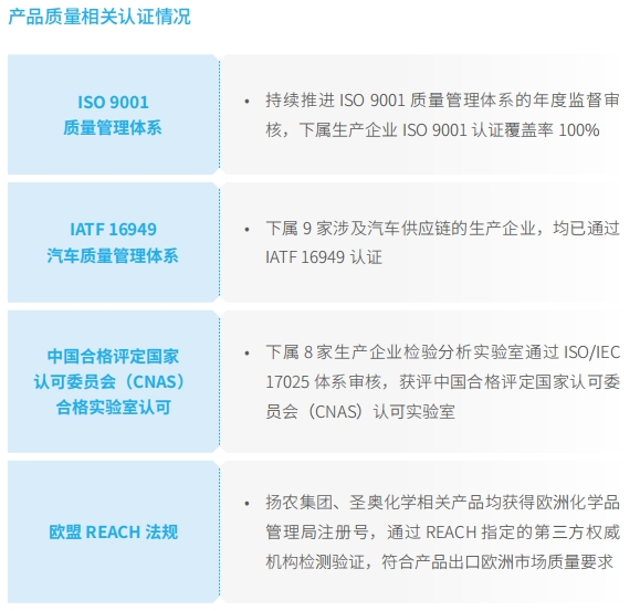 中化国际秉承“以客户为中心”的服务理念,严格管控化学产品从生产到交付全流程的质量和安全,贴标、存储、处理和运输均符合国家和运营地区关于化学品的管控要求。同时粘贴化学品安全标签、提供随附的产品SDS(安全数据表)和MSDS(化学品安全技术说明书),如实告知客户产品的危险因素和安全防护措施,并承诺所有产品宣传、信息及标识均真实规范,对客户的健康和安全负责。