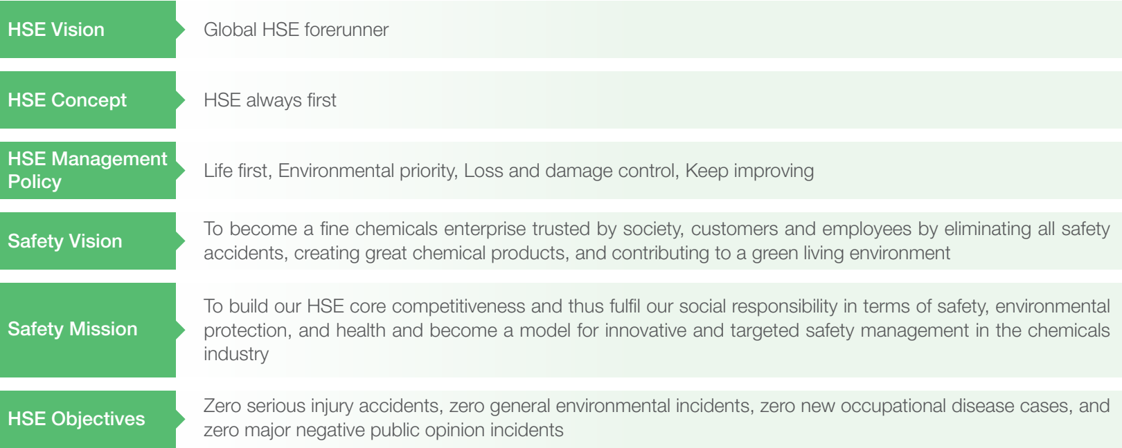 The company has formulated various regulatory mechanisms covering areas such as Health, safety and environmental protection management regulations, HSE accountability management measures, and Life-saving instruction management measures. The company has created a HSE Committee which is responsible for coordinating key events in HSE management as well as a Health, Safety and Environment Sub-Committee under the Sustainable Development Executive Committee which is responsible for promoting safety production, occupational health, and environmental protection. HSE committee meetings are held on a quarterly basis to resolve and decide upon HSE strategic decision-making and performance; monthly HSE reports follow up on the implementation of major HSE initiatives and key KPI indicators within the different business units; the HSE information platform and energy conservation and ecological environmental protection statistics system provide a dynamic grasp of operating conditions on a daily basis and triggers HSE risk warnings to ensure safety and control.